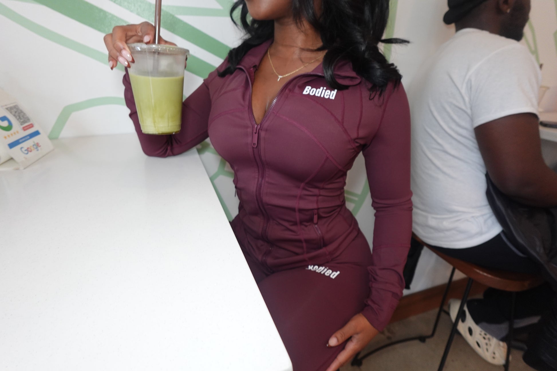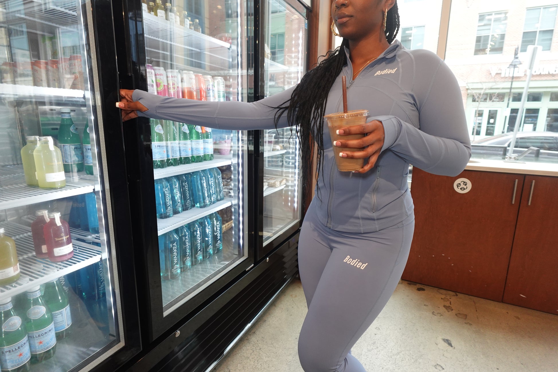 Polyester And Spandex Material Smooth Two Piece Jacket Zip Up And Yoga Pants.